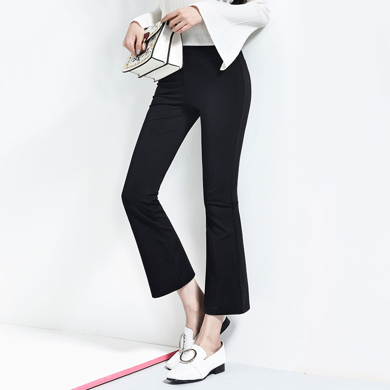 商品名称:逸阳女裤春装新款韩版休闲裤女九分裤黑色弹力微喇叭裤子显瘦0032 浓郁复古风 修饰腿型 生而优雅